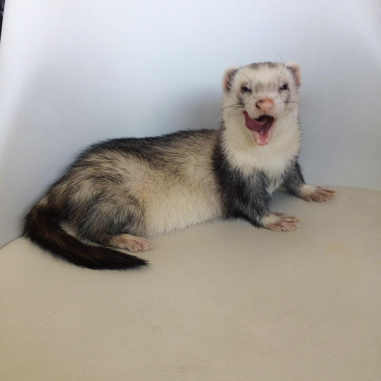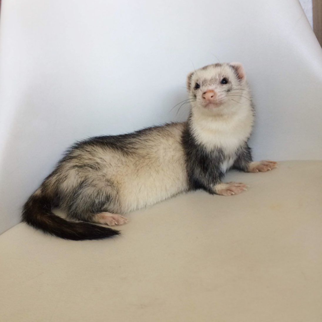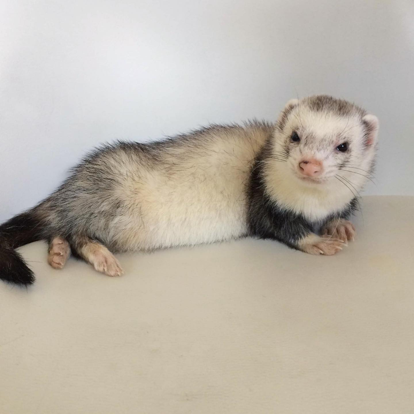 Playful, curious, and affectionate, this ferret is well-socialized and enjoys human interaction. It responds well to positive reinforcement training and has great potential to learn commands, use a litter box, and perform fun tricks.